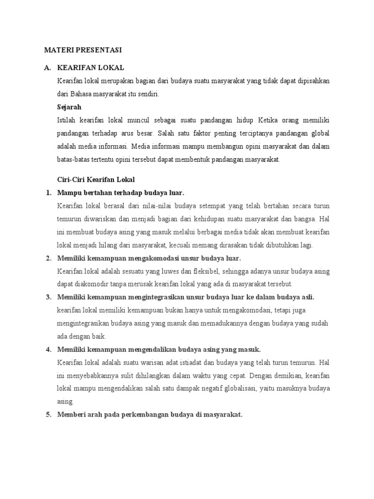 A. KEARIFAN LOKAL