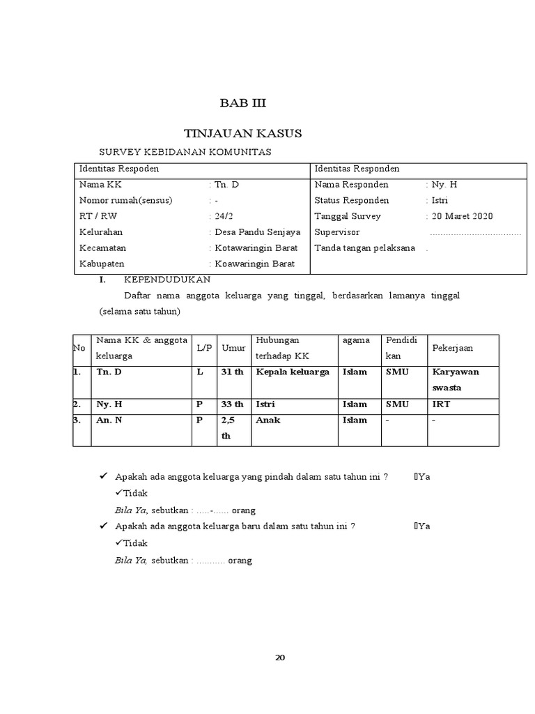 Nama KK : Tn. D Nama Responden : Ny. H