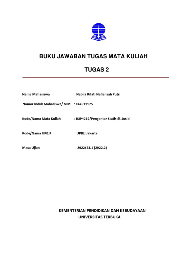 Kode/Nama Mata Kuliah : ISIP4215/Pengantar Statistik Sosial