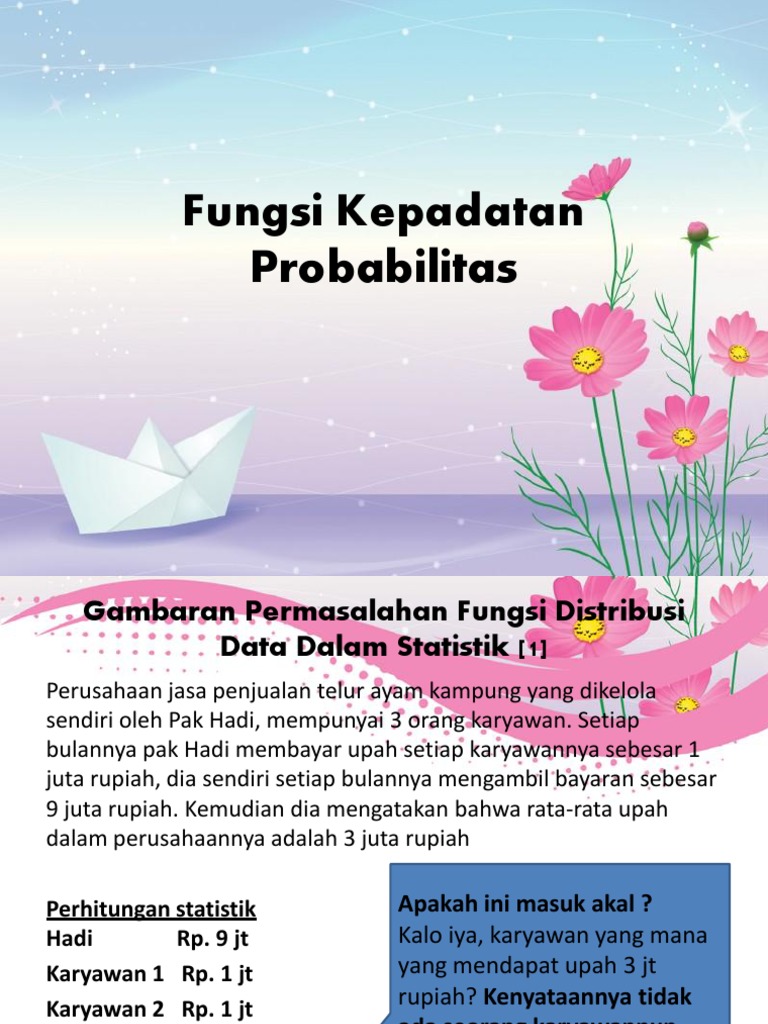 (pdf) menyatakan nilai probabilitas dari setiap kejadian X dan