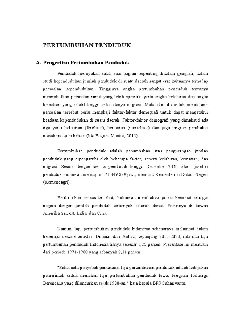 A. Pengertian Pertumbuhan Penduduk
