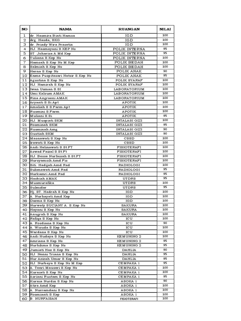 NO NAMA RUANGAN NILAI
