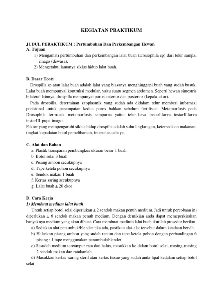 1) Mengamati pertumbuhan dan perkembangan lalat buah (Drosophila sp) dari telur sampai