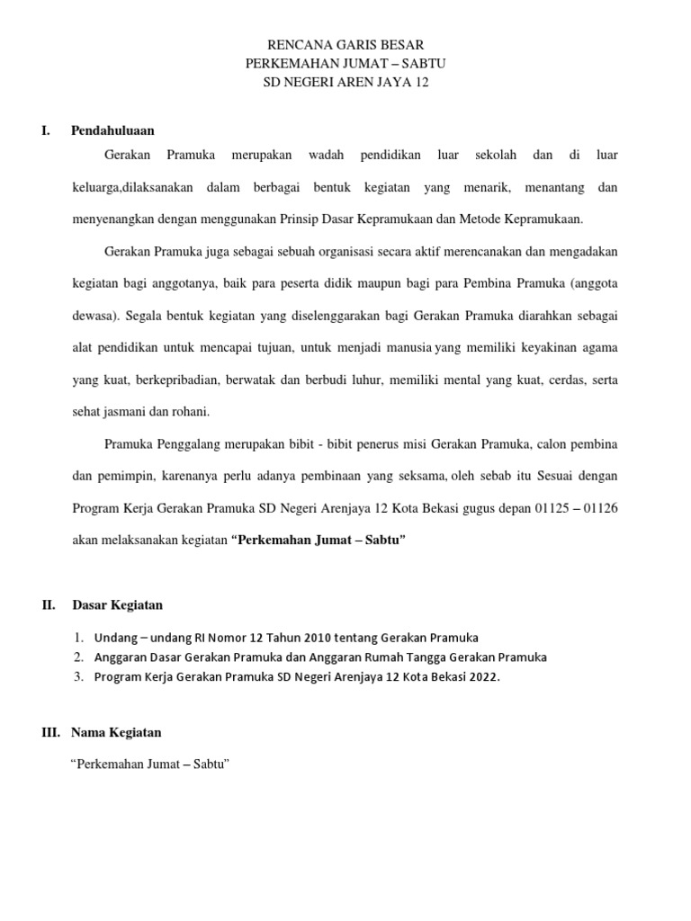 3. Program Kerja Gerakan Pramuka SD Negeri Arenjaya 12 Kota Bekasi 2022.