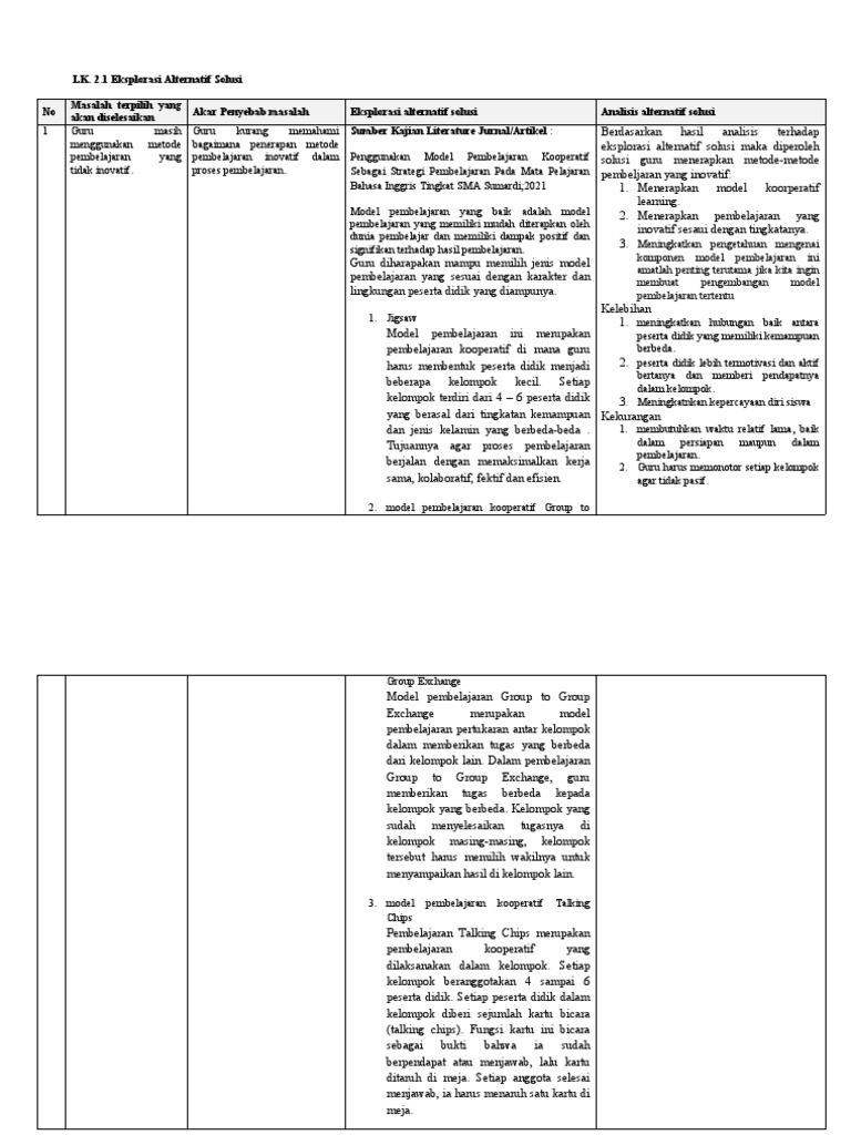 Bahasa Inggris Tingkat SMA Sumardi;2021 1. Menerapkan model koorperatif