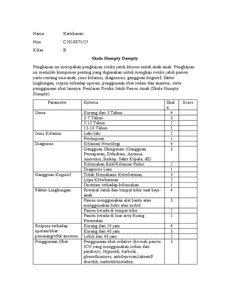 pemggunaan obat lainnya. Penilaian Resiko Jatuh Pasien Anak (Skala Humpty