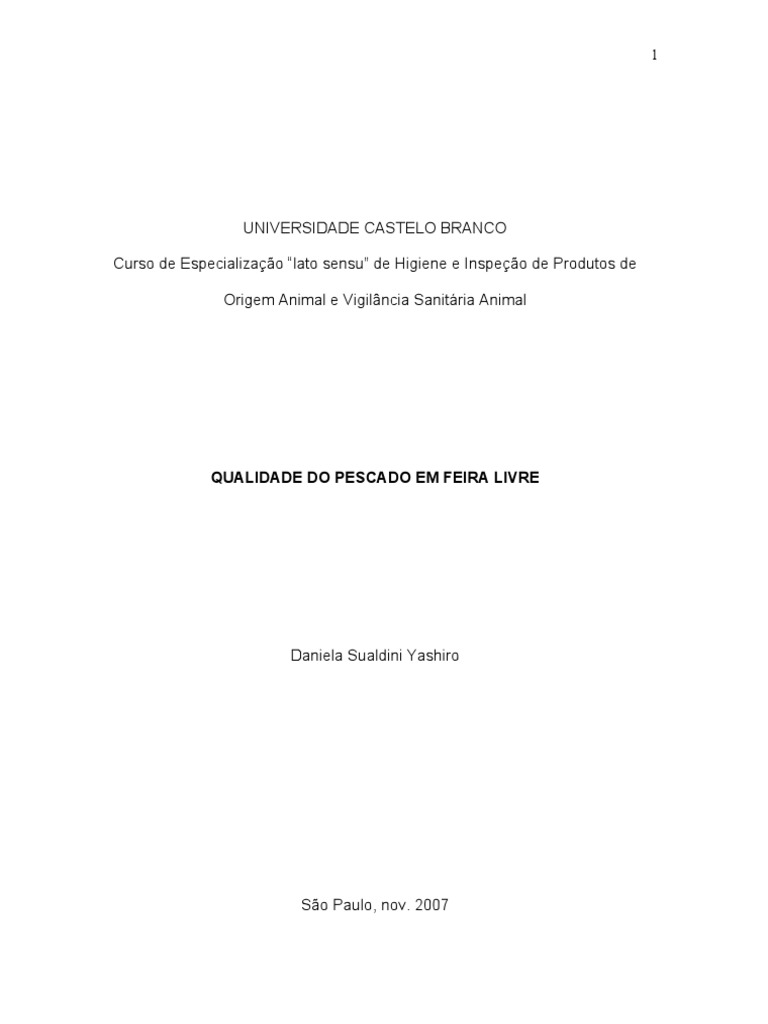 Elaborado por Daniela Sualdini Yashiro Aluna do curso de Higiene e Inspeo de Produtos de Origem Animal e Vigilncia Sanitria Animal da UCB Foi analisado e aprovado com grau: .......................................