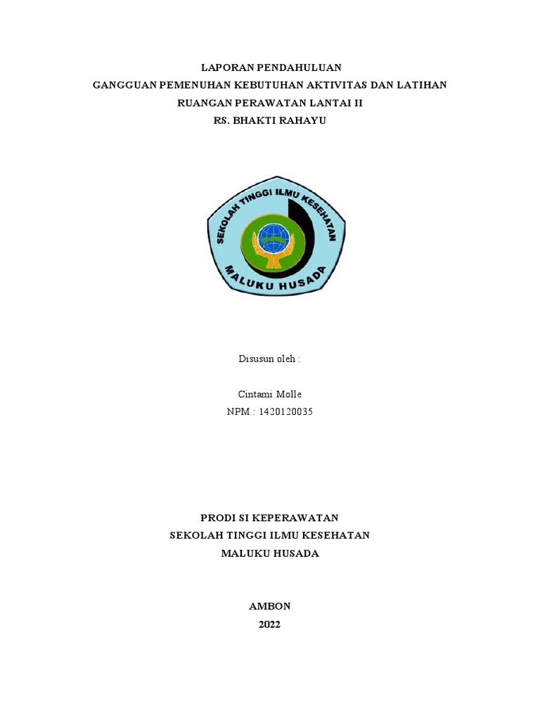 Judul : Laporan Pendahuluan Dengan Gangguan Pemenuhan Kebutuhan Aktivitas dan