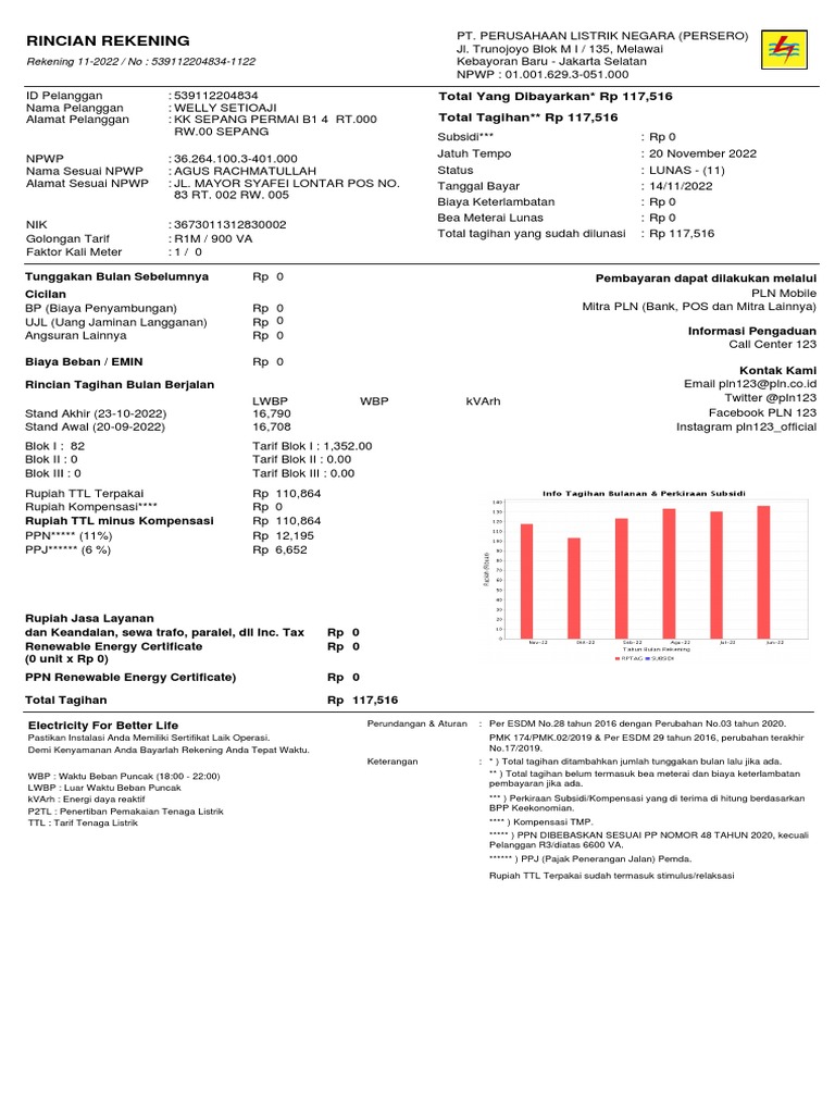 Rekening 11-2022 / No : 539112204834-1122 Kebayoran Baru - Jakarta Selatan