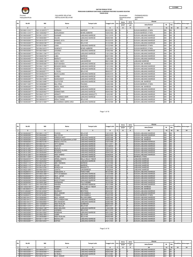 64 730106011216**** 730110410871**** ANDI MULUK SELAYAR 08|01|1971 47 S P DUSUN LABUANG MAREGE 001 001 0