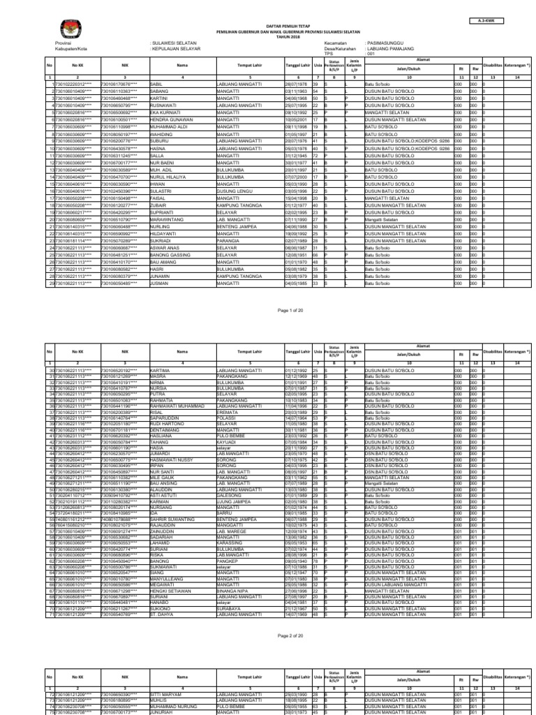 433 730106170216**** 730106150494**** ANJAS MUANSYAH MANGATTI 15|04|1994 24 B L DUSUN MANGATTI SELATAN 002 003 0