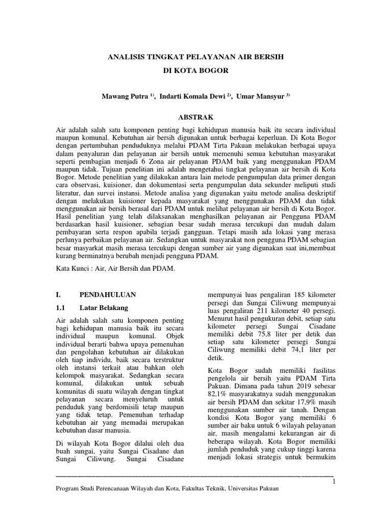 Analisis Pelayanan Air Bersih Bogor