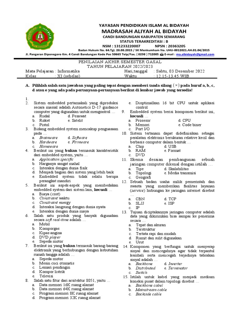 A. Pilihlah salah satu jawaban yang paling tepat dengan memberi tanda silang (×) pada huruf a, b, c,