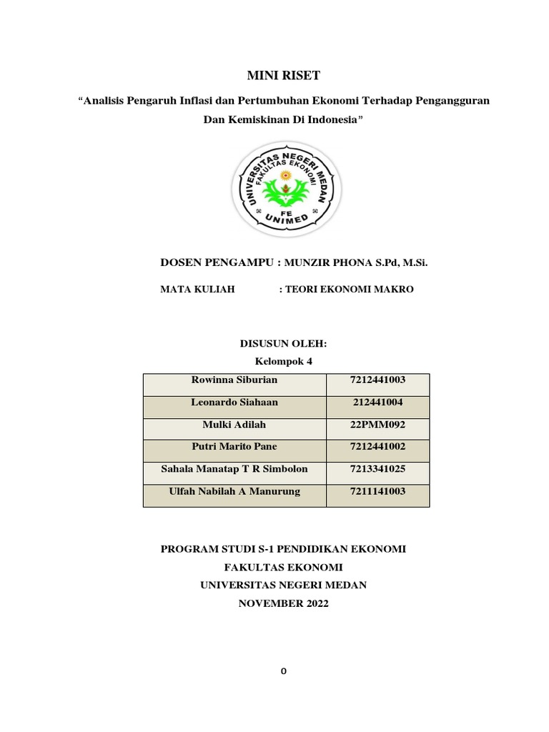 Pengaruh Inflasi dan Pertumbuhan Ekonomi Terhadap Pengangguran Dan Kemiskinan Di