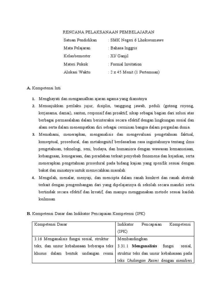 B. Kompetensi Dasar dan Indikator Pencapaian Kompetensi (IPK)