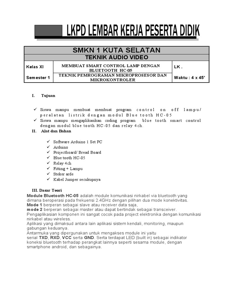 Kelas XI MEMBUAT SMART CONTROL LAMP DENGAN LK .