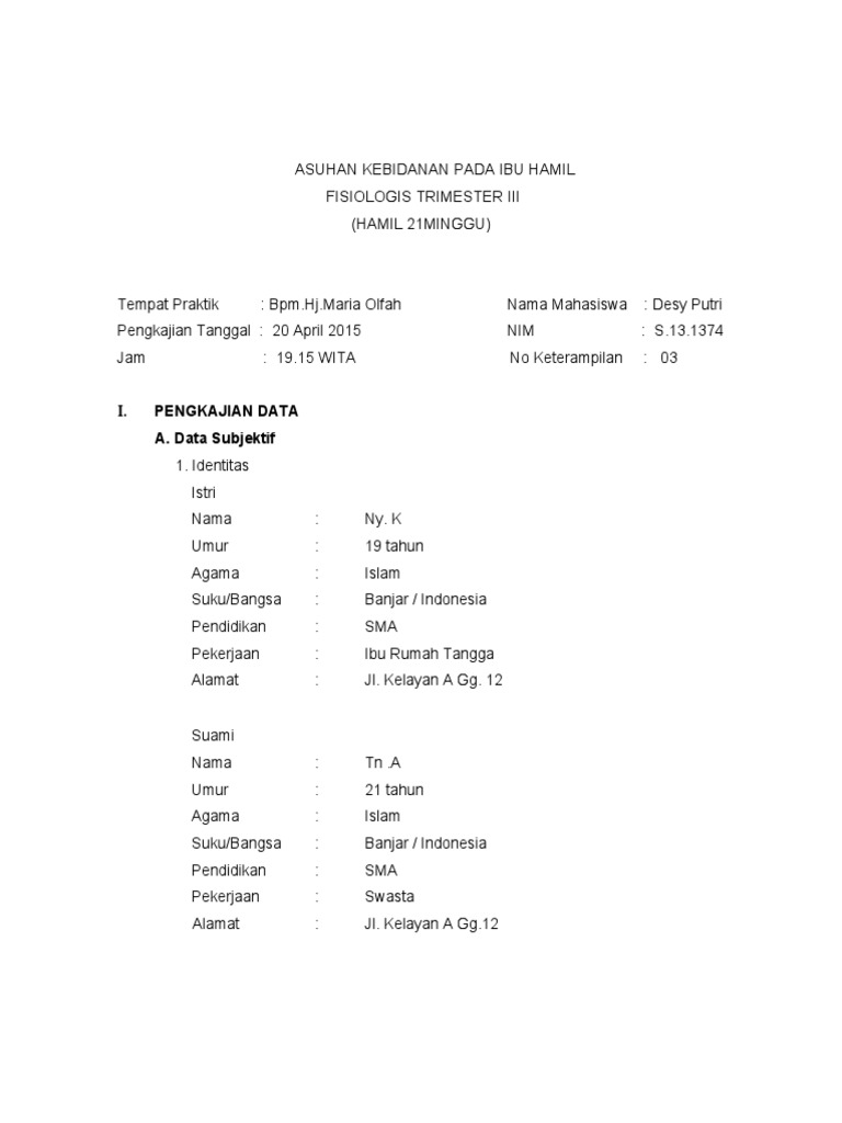 Tempat Praktik : Bpm.Hj.Maria Olfah Nama Mahasiswa : Desy Putri