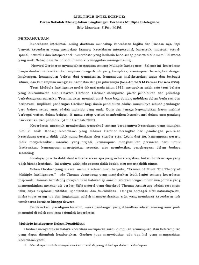 mengembangkan konsep Multiple Intelegences di sekolah. Menurut Undang-Undang Nomor 20 Tahun