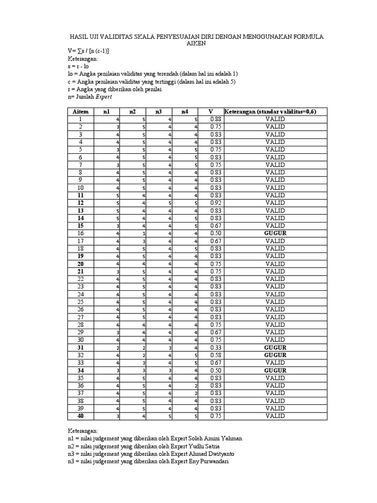 HASIL UJI VALIDITAS SKALA PENYESUAIAN DIRI DENGAN MENGGUNAKAN FORMULA