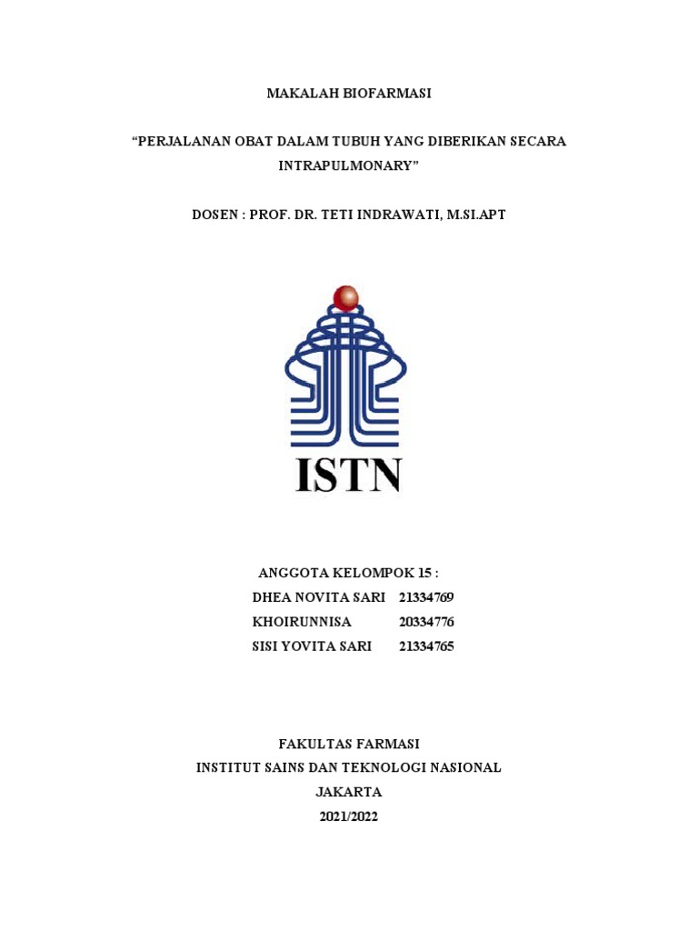 makalah yang berjudul “PERJALANAN OBAT DALAM TUBUH YANG DIBERIKAN
