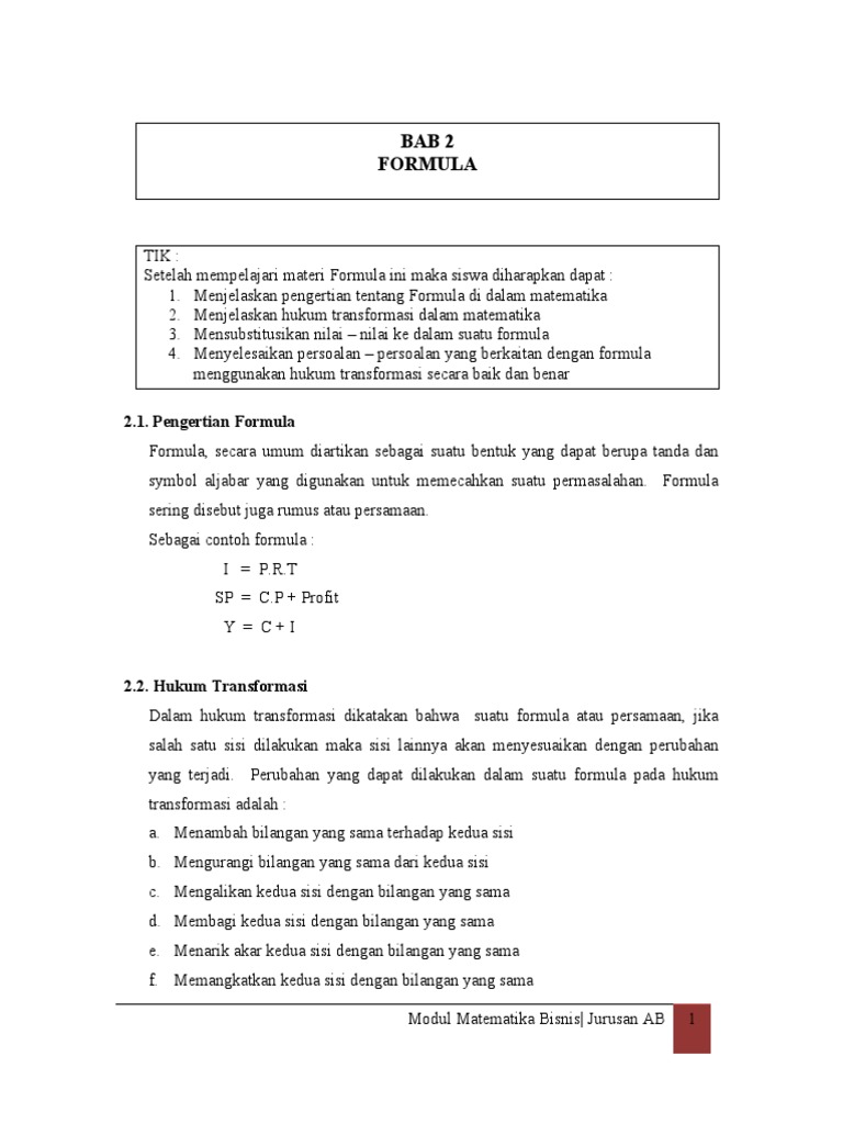1. Menjelaskan pengertian tentang Formula di dalam matematika