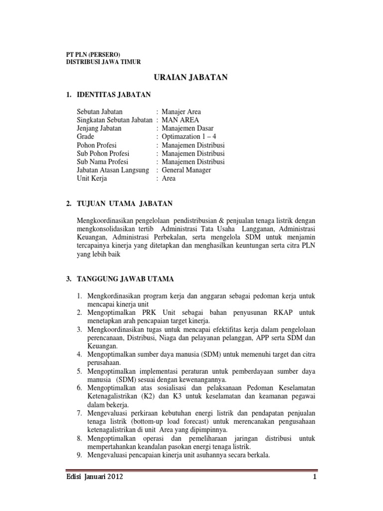 Sebutan Jabatan : Manajer Area