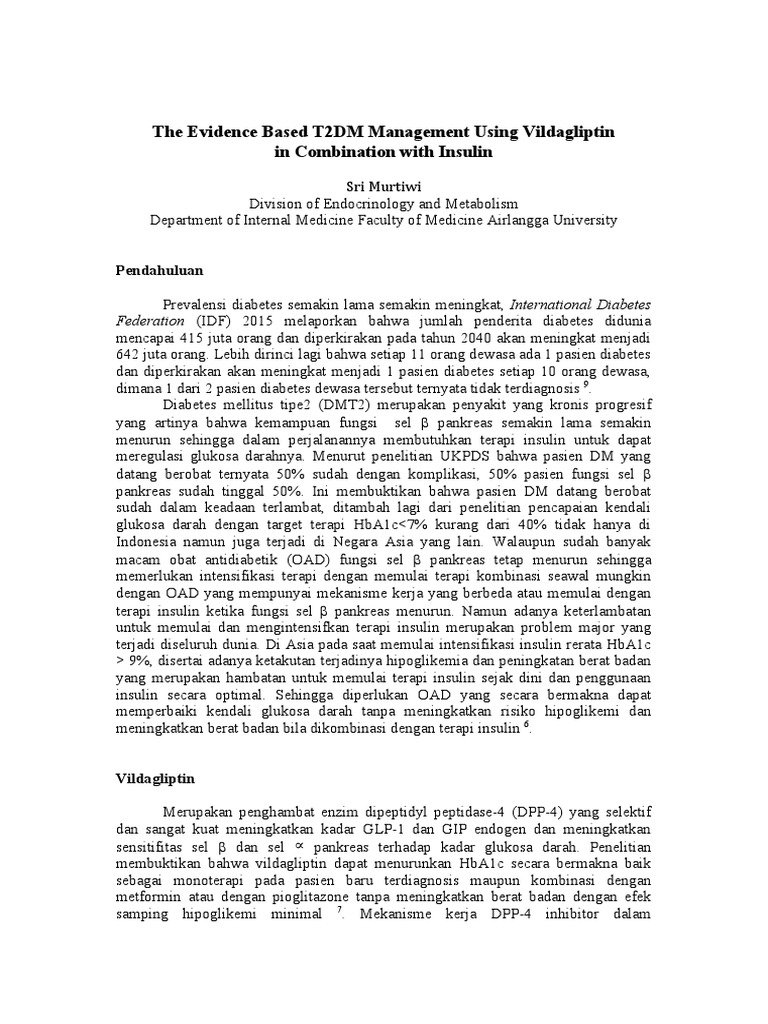 Hasil penelitian ini menunjukkan bahwa kombinasi vildagliptin dengan insulin