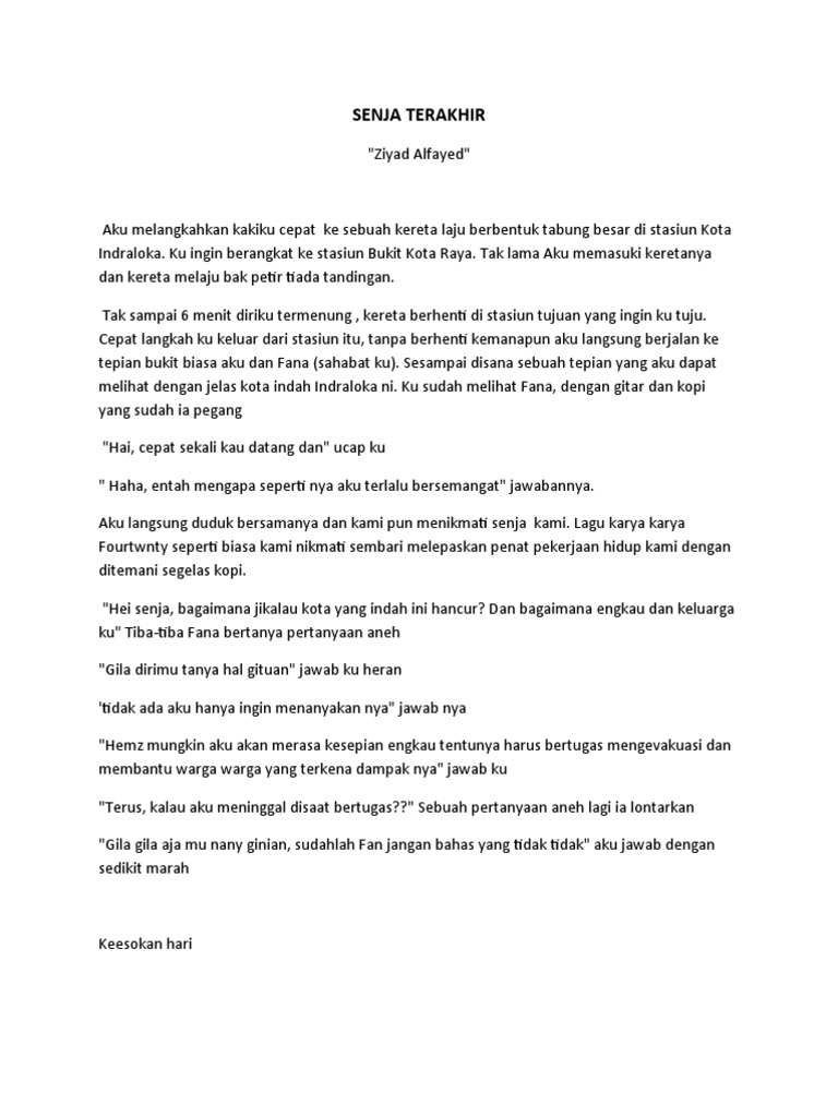 ku."hei senja, aku menitipkan ayah dan ibu ku, jagalah mereka. Engkau sudah tau bukan