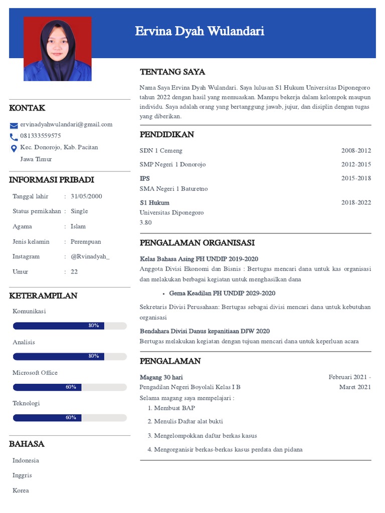Nama Saya Ervina Dyah Wulandari. Saya lulusan S1 Hukum Universitas Diponegoro