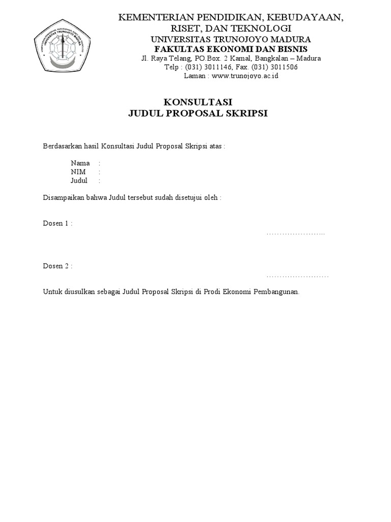 Berdasarkan hasil Konsultasi Judul Proposal Skripsi atas :