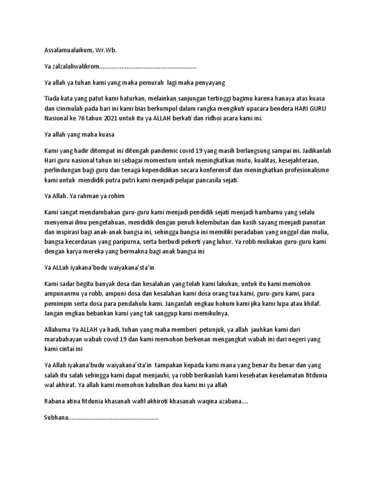 Nasional ke 76 tahun 2021 untuk itu ya ALLAH berkati dan ridhoi acara kami ini.