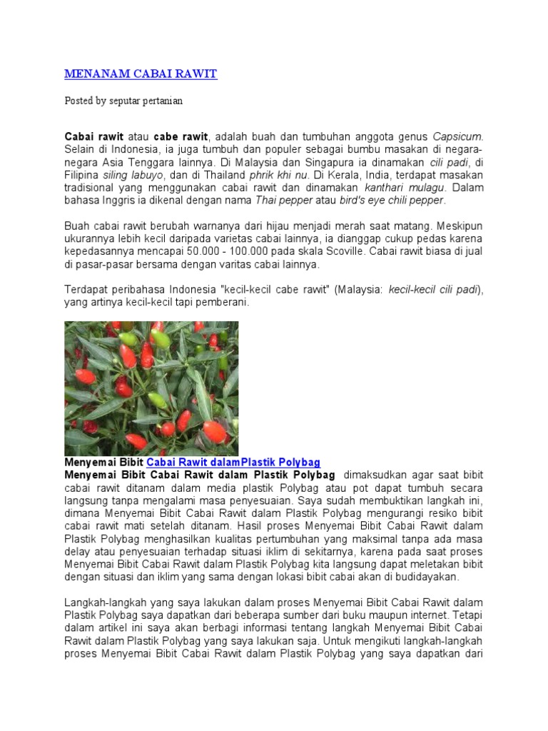 Menyemai Bibit Cabai Rawit dalam Plastik Polybag dimaksudkan agar saat bibit
