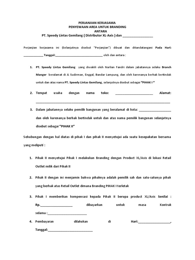 1. Pihak II menyetujui Pihak I melakukan Branding dengan Product XL/Axis di lokasi Retail