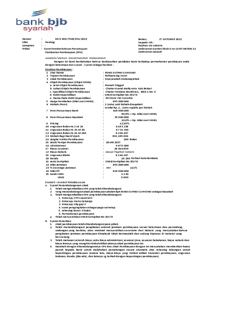 2. Yang menandatangani akad pembiayaan adalah Bpk RENO SATRIO CAHYONO sebagai Nasabah