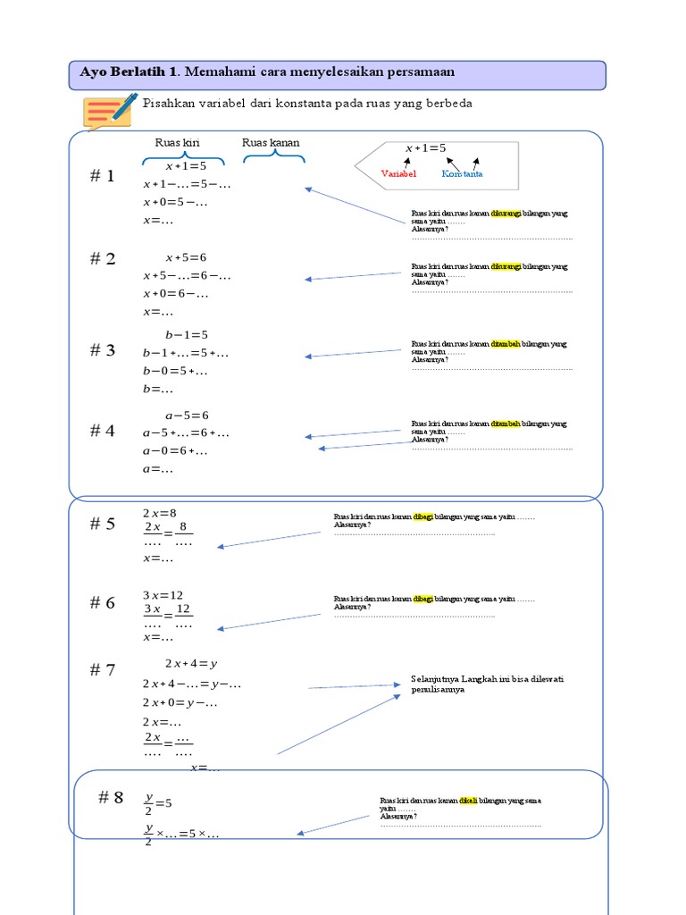 Pisahkan variabel dari konstanta pada ruas yang berbeda
