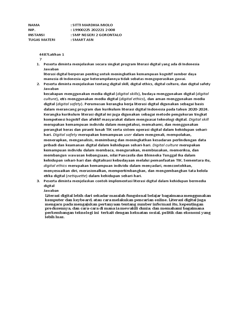 1. Peserta diminta menjelaskan secara singkat program literasi digital yang ada di Indonesia