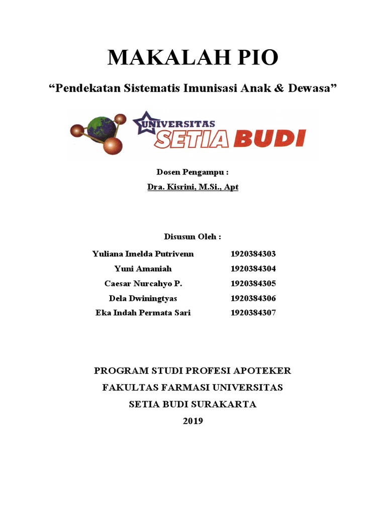 2. Untuk mengetahui PIO dan Farmasi Klinis dari imunisasi?