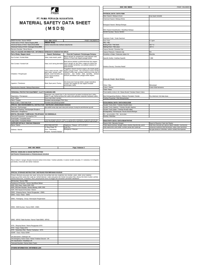 MSDS Number / Nomor MSDS SHE / 006 / MSDS PAGE / HALAMAN 01 TLV / TLV 0.1 ppm