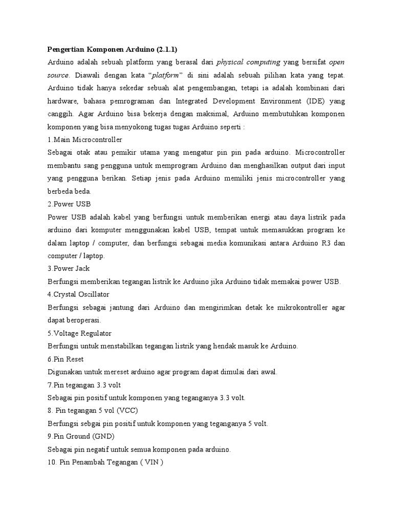 canggih. Agar Arduino bisa bekerja dengan maksimal, Arduino membutuhkan komponen