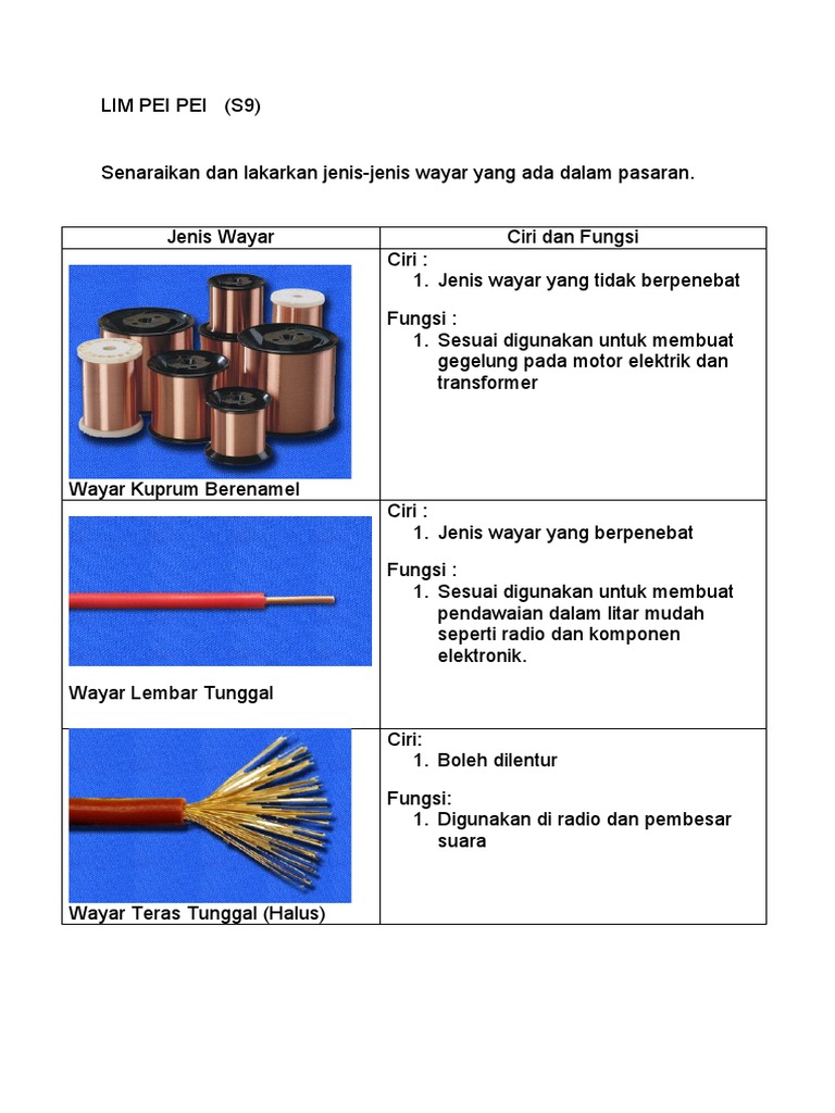 Jenis Wayar Ciri dan Fungsi