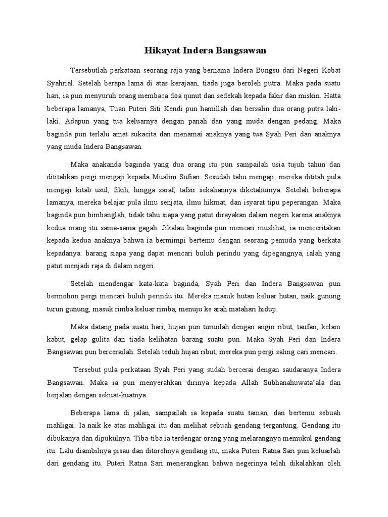 Tersebutlah perkataan seorang raja yang bernama Indera Bungsu dari Negeri Kobat