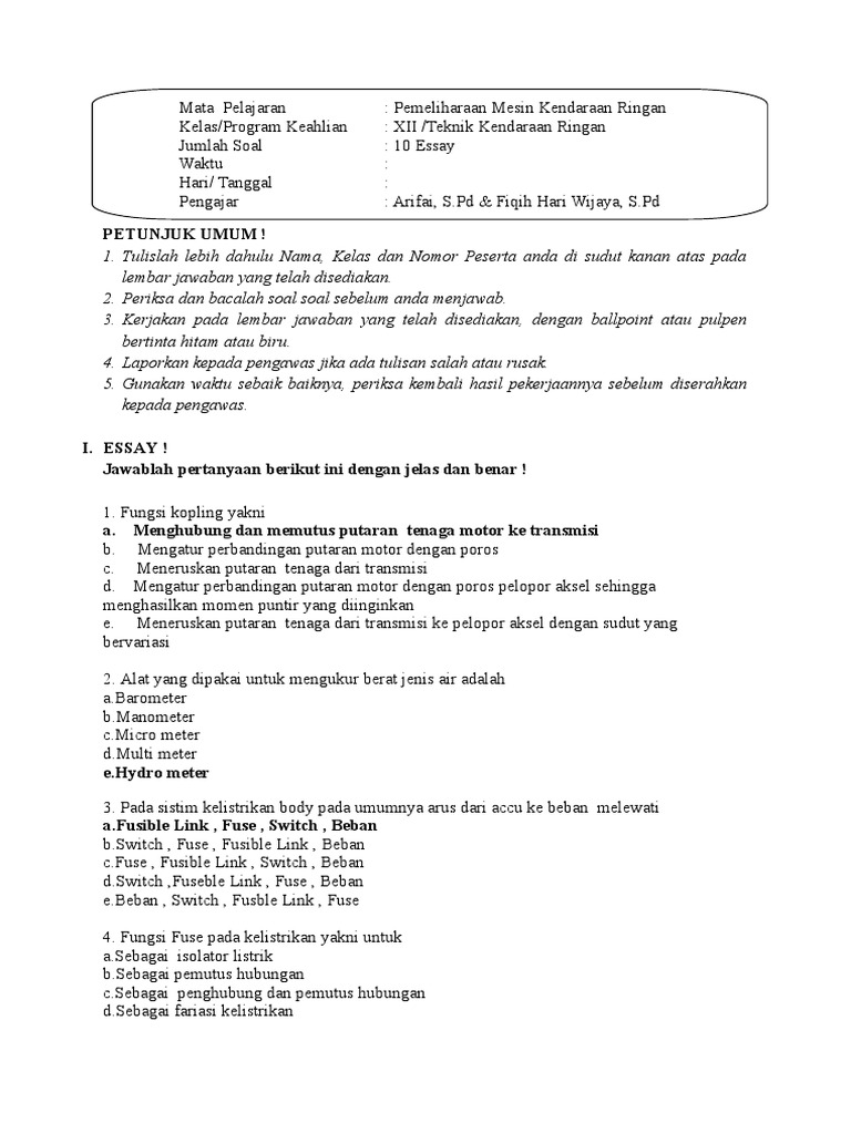 Jumlah Soal : 10 Essay