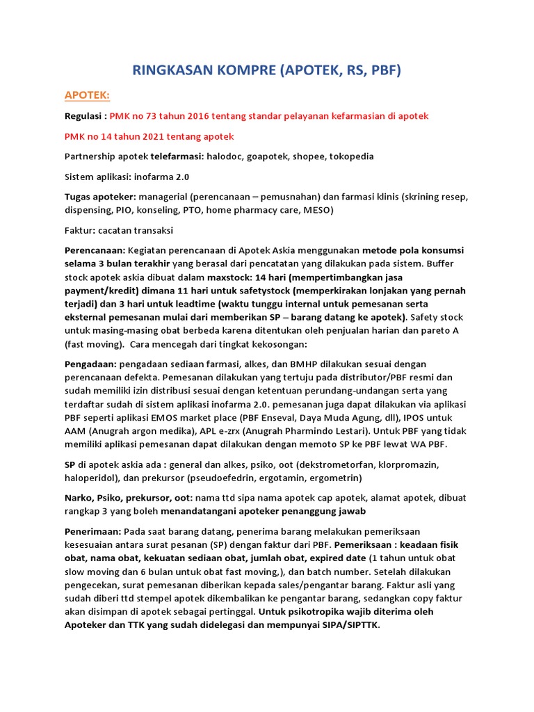 RINGKASAN KOMPRE (APOTEK, RS, PBF)