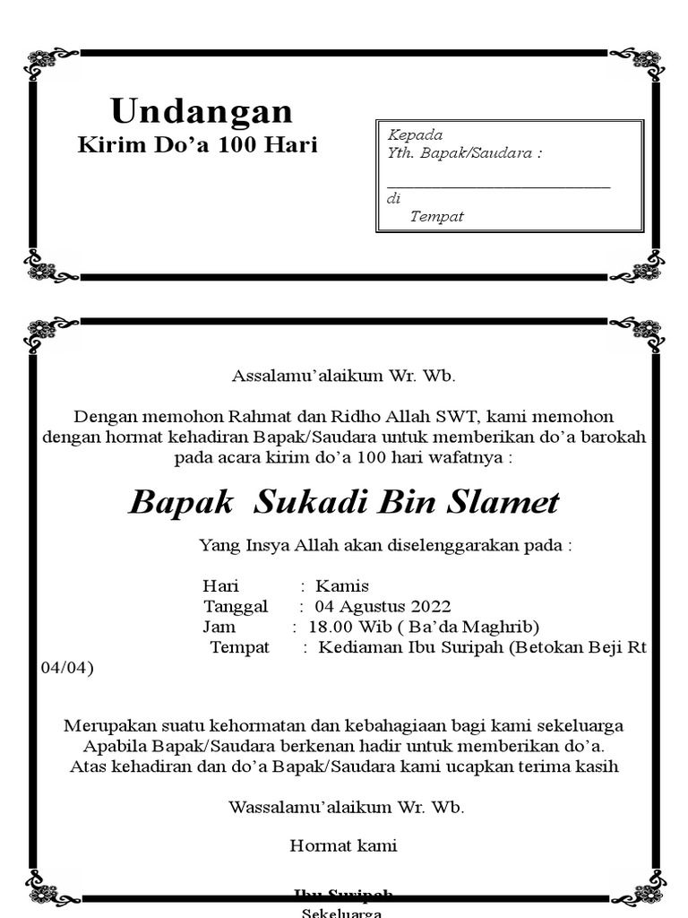 Kirim Do’a 100 Hari Yth. Bapak/Saudara :