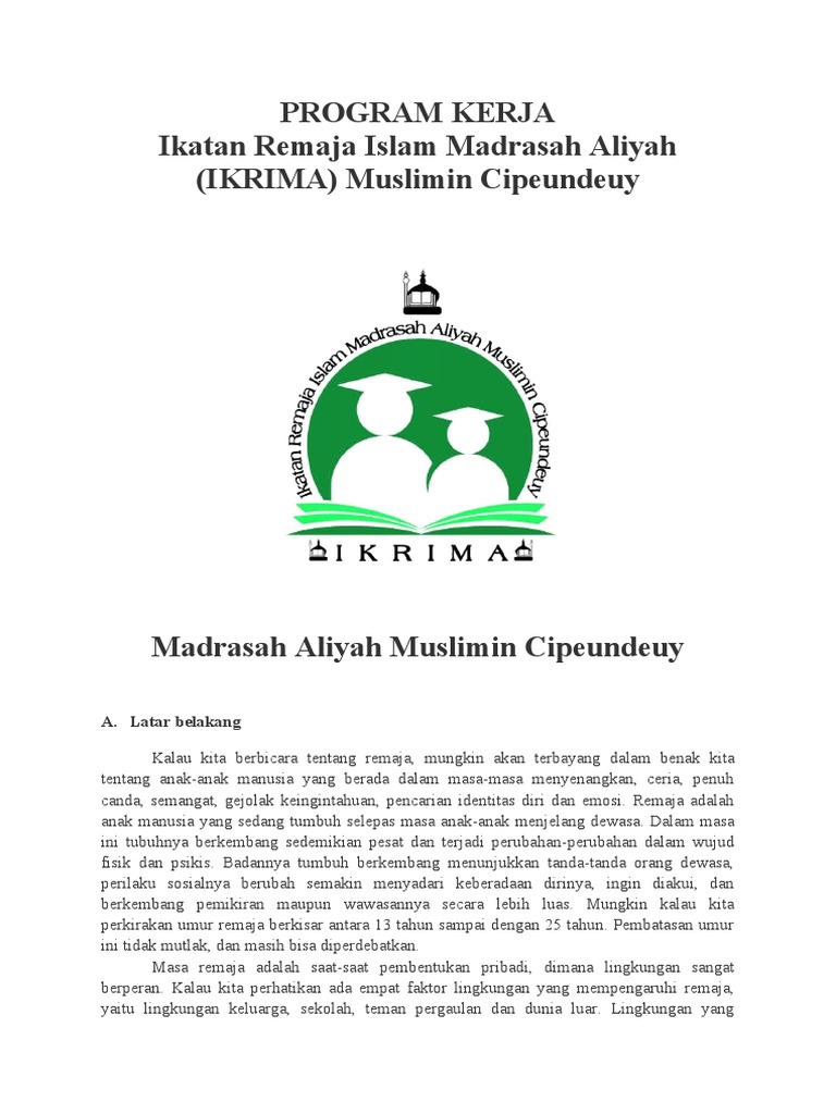 Demikian Proposal “PROGRAM KERJA IKRIMA” ini kami buat. Harapan kami agar