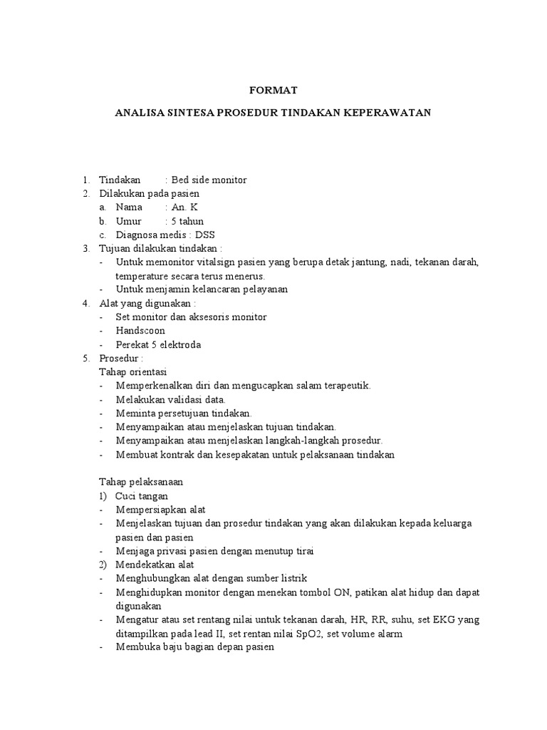 ANALISA SINTESA PROSEDUR TINDAKAN KEPERAWATAN