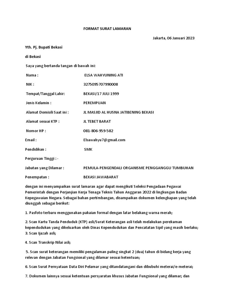FORMAT SURAT LAMARAN