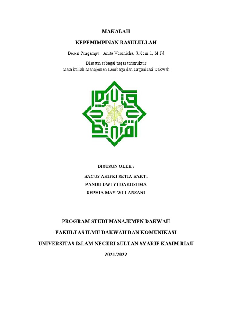 “Kepemimpinan Rasulullah” ini tepat pada waktunya. Selain itu, makalah ini juga