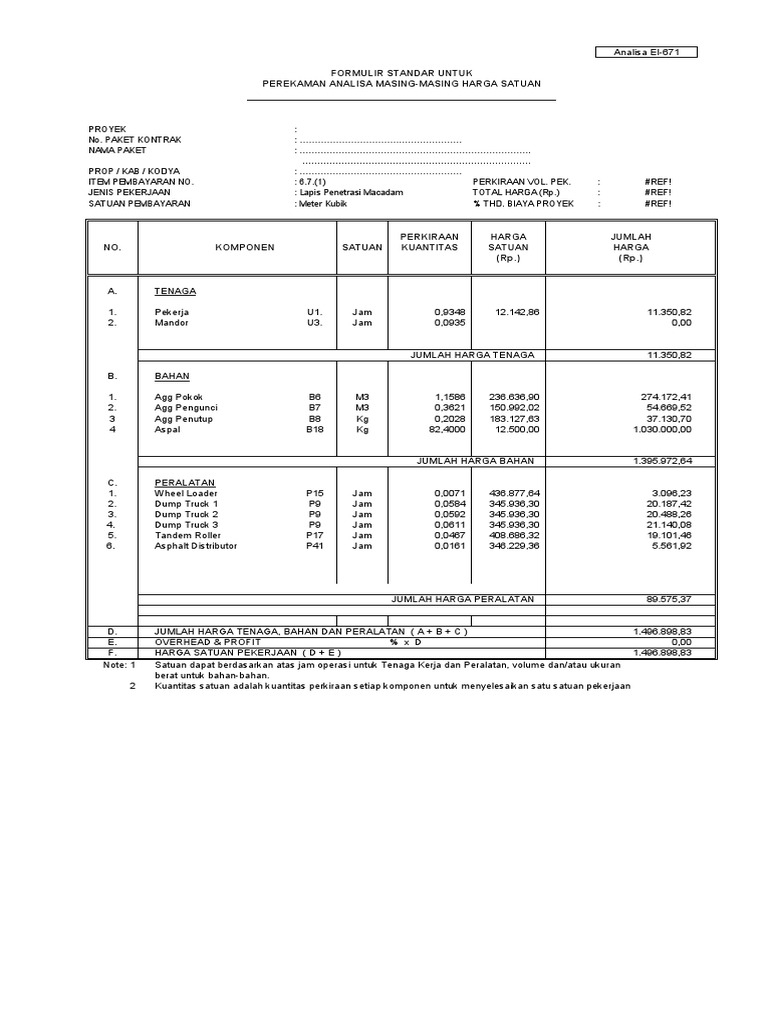 ITEM PEMBAYARAN NO. : 6.7.(1) Analisa EI-671