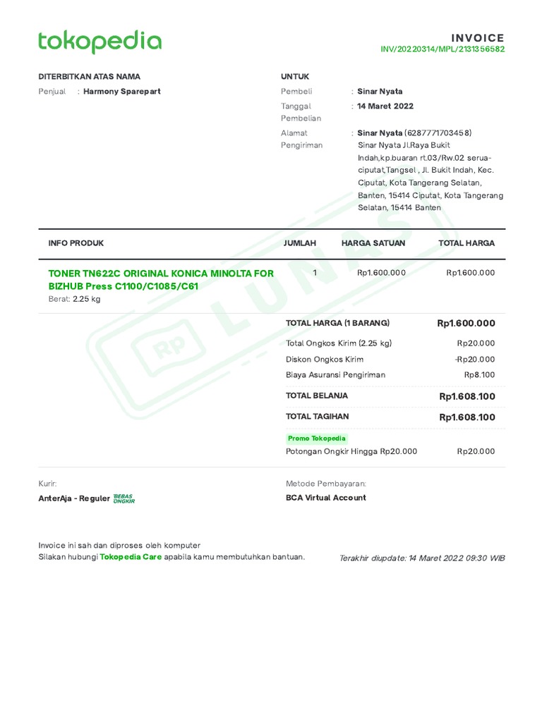 Penjual : Harmony Sparepart Pembeli : Sinar Nyata